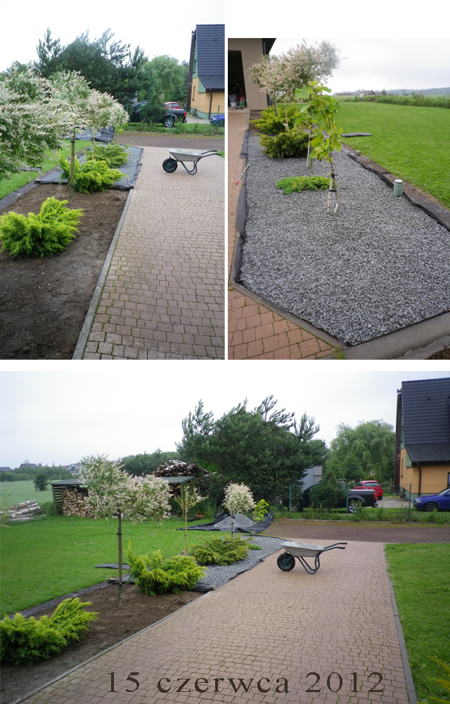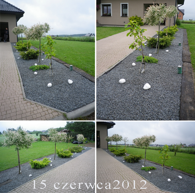 Ostatnio stwierdziłam, że muszę doprowadzić ogród do stanu w którym będziemy mogli go podziwiać, a nie tylko plewić, kosić i podlewać:) Dodam, że co roku kupujemy sobie jakieś rośliny na pamiątkę rocznicy ślubu – wierzby Hakuro – to nasza pierwsza rocznica. Zobaczcie nasze dzieło.