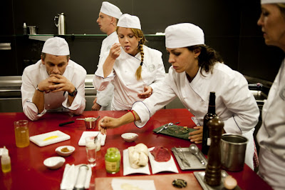 A teraz szybciutko o moich emocjach. Jak już zdążyliście mnie poznać jestem osobą, którą szybko ogarnia lęk:) a w obliczu strachu staram się myśleć w taki sposób aby tylko nie przynieść sobie i bliskim wstydu. Po cudownej kolacji którą zaserwował nam Jordi Cruz okazało się że będziemy odwzorowywać jedno z konsumowanych dań Wędzony tatar na sosie z gotowanego żółtka, z mrożonym foie gras, z kaparami, ogórkiem i szalotką, z posypką z japońskiej bułki tartej i masła.
